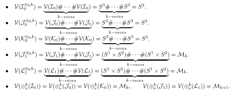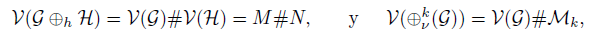 3 ). Recordemos que M es la 3-variedad asociada de G y la denotamos por V(G) = M, y su relación con la suma horizontal y vertical entre grafos está dada por