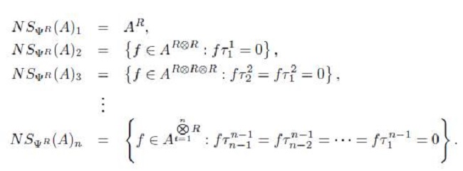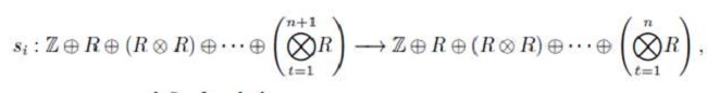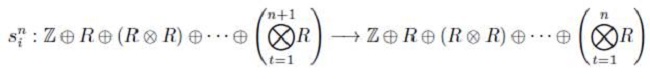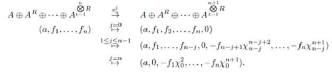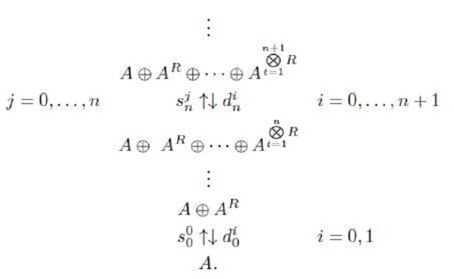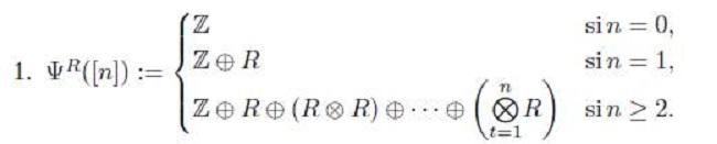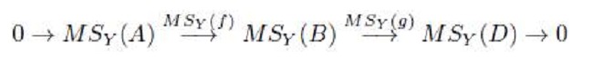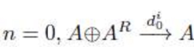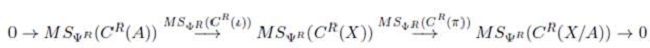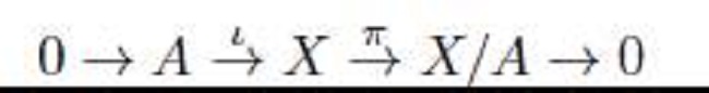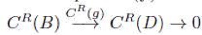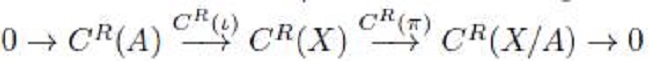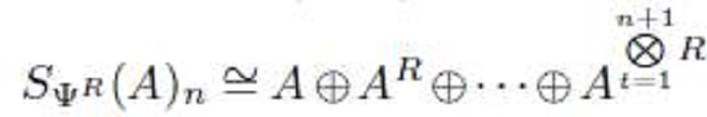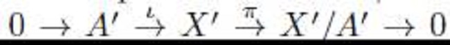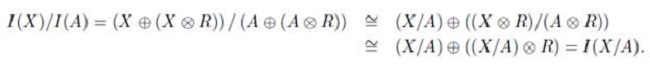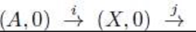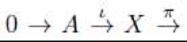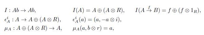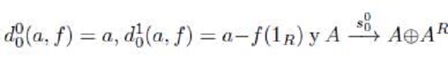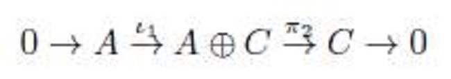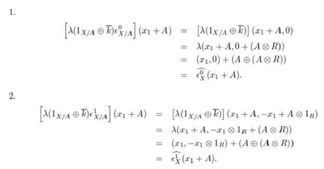 Así pues i : A → X es una sección, por lo tanto i ⊕ (i ⊗ 1r) es una sección, luego toda sección es monomorfismo, entonces i ⊕ (i ⊗ 1r) es un monomorfismo, más aún I (i)(a, b ⊗ 1r ) = [i ⊕ (i ⊗ 1r )] (a, b ⊗ r) = (a,b ⊗ r), para (a,b ⊗ r) Є A ⊕ (A ® R), por tanto I(i) : A ⊕ (A ⊗ R) → X ⊕ (X ⊗ R) es el monomorfismo inclusión. 0