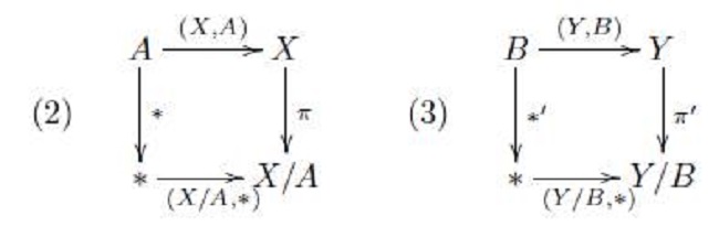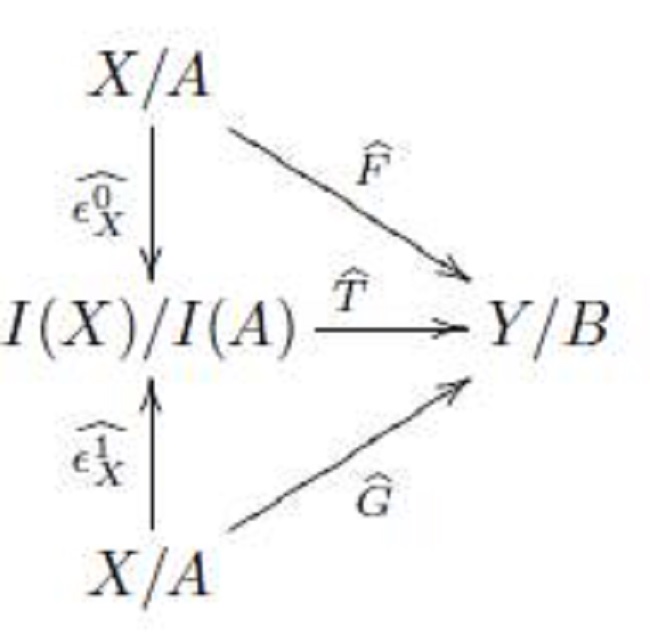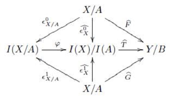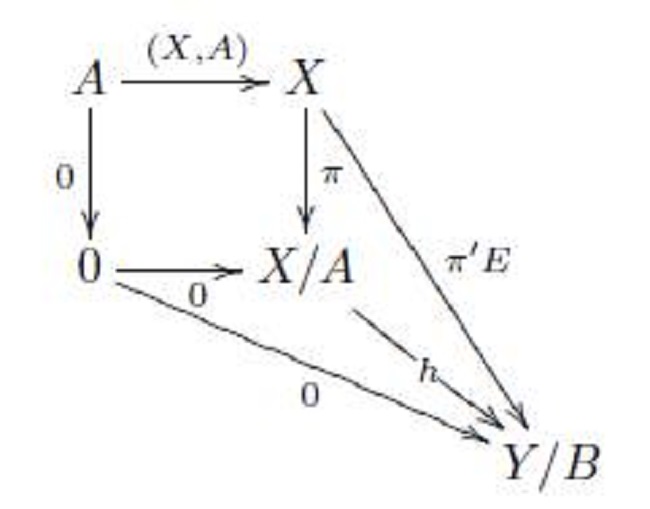 Ahora, por la Proposición 7.9 tenemos que X/A ≅ Y/B, donde el isomorfismo h : X/A → Y/B es definido por medio del siguiente diagrama conmutativo