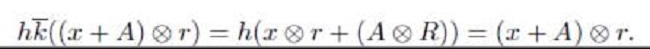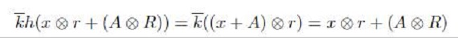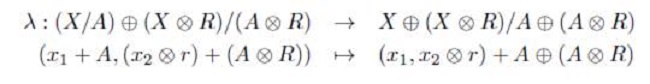 Así pues, existe un homomorfismo de grupos abelianos k : (X/A) ⊗ R → (X ⊗ R)/(A ⊗ R), tal que k((x + A) ⊗ r) = k(x + A, r). Ahora