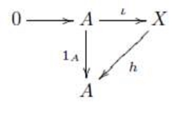 2. Puesto que la inclusión i : A → X es monomorfismo, entonces la sucesión 0 → A X es exacta, ahora puesto que A es inyectivo, entonces existe un homomorfismo de grupos abelianos h : X → A tal que el siguiente diagrama conmuta