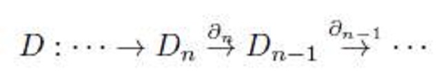 1. Un complejo de cadenas D de grupos abelianos, es una familia de grupos abelianos [Dn}nЄ ℤ junto con homomorfismos de grupos como sigue