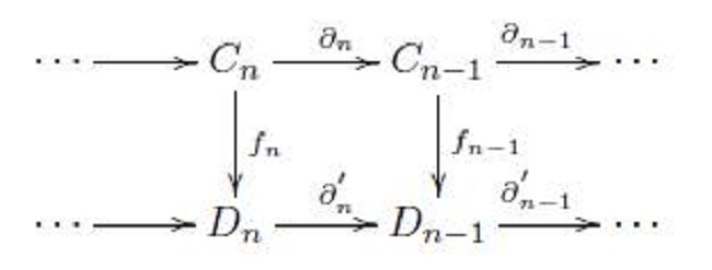 2. Si C y D son complejos de cadenas de grupos abelianos, una transformación de cadenas f : C → D es una familia de homomorfismos {fn: Dn → Cn}n Єℕ tal que el siguiente diagrama conmuta para todo n