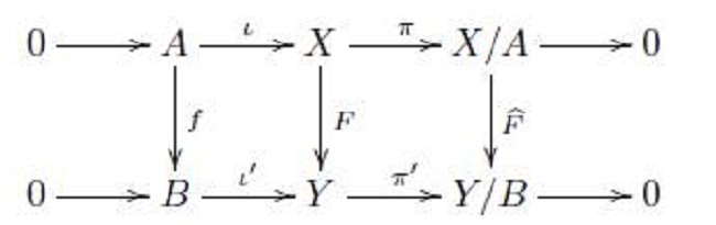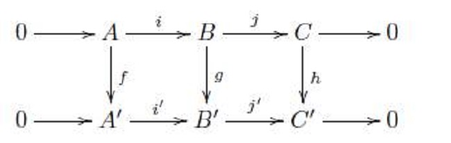 sean las sucesiones exactas y cada diagrama conmutativo, entonces el siguiente diagrama