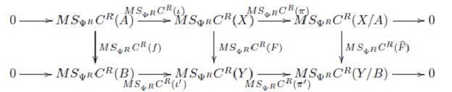 en el cual las flechas horizontales forman sucesiones exactas. Aplicando el funtor MSΨrCR obtenemos en Ch+(Ab) el siguiente diagrama conmutativo