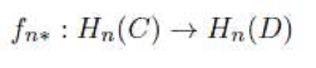como sigue: Sea Cn+∂ (Cn+1) Є Hn(C), entonces fn* (cn + ∂ (Cn+1)) = fn(cn)+ ∂ (Dn+1). El subíndice n generalmente se omite de fn* para dar la notación f* : Hn(C) → Hn(D) siempre que no haya confusión.
