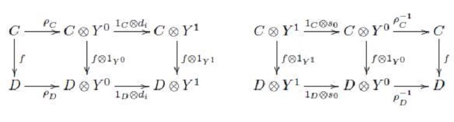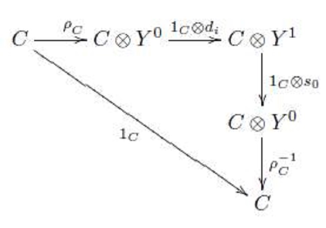Sea Y : Δ → C un objeto modelo y supongamos que existe un bifuntor (-)⊗ ( -) : C xC → C y existe un isomorfismo pC : C → C⊗ Y0 natural en C, entonces los siguientes diagramas son conmutativos