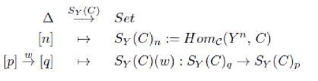 Definición 3.6 (Funtor Singular). Sea C una categoría y Y : Δ → C un objeto modelo sobre C, entonces el Funtor Singular SY está dado por