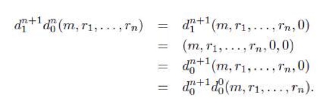 tales que ∂n-1o ∂n= 0 para todo n Є ℤ. El subíndice n de ∂n se omitirá en la mayoría de los casos, siempre que no haya confusión.