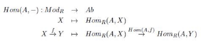 donde Hom(A,f )(α) = fα, para α Є HomR(A, X).