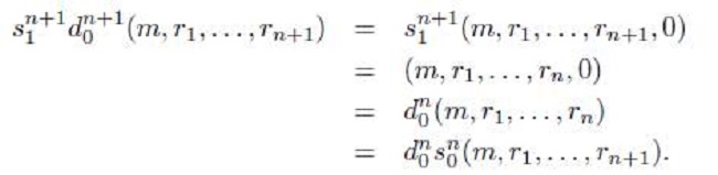 Teorema 2.6 ([5, Lema 2.2, pág. 24]). Todo morfismo φ Є HomΔ ([m], [n]) puede ser escrito como composición de epimorfismos y monomorfismos de forma única como sigue: