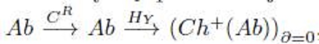 Puesto que para un objeto de Ch(Ab) existen sus grupos de homología y el funtor singular de un objeto modelo Y : Δ → C asigna a un objeto C de C un conjunto simplicial1, para definir grupos de homología de C es necesario un funtor desde la categoría Δ °Set a la categoría Ch(Ab), el cual se construye pasando primero por una categoría que es equivalente a Ch+(Ab), la cual es la categoría de los grupos abelianos simpliciales Δ °Ab.