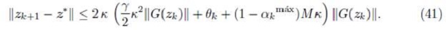 Así, de (37), (40) y dado que,||G′(zk)||≤ M, tenemos que