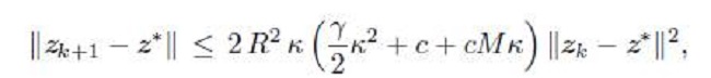 por lo tanto, la sucesión {zk} converge cuadráticamente α z*.