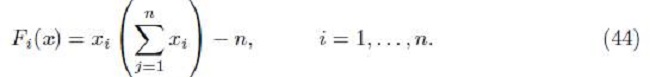 el cual, después de unos sencillos cálculos matriciales se convierte en el siguiente sistema de n + m + n ecuaciones no lineales,
