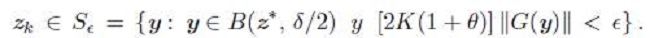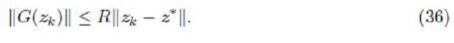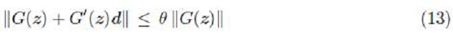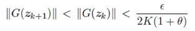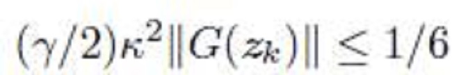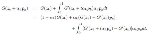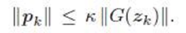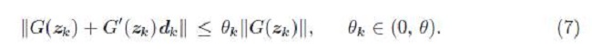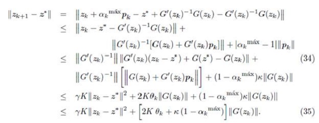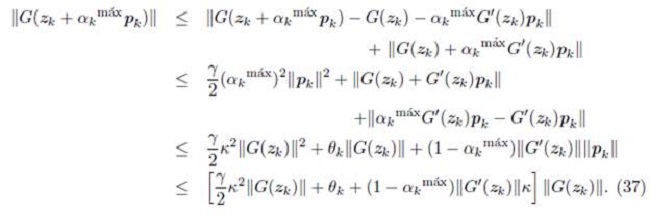 Dado que G es continuamente diferenciable y zk → z* entonces existe una constante M > 0 tal que ||G'(zk)|| ≤ M, para todo k suficientemente grande. De igual forma, como G(zk) → 0, αkmáx → 1 y θk = O (||G'(zk)||) entonces, para todo k suficientemente grande, se cumple que