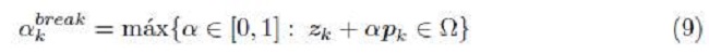 3. Tamaño de paso máximo. Dado TkЄ [t, 1), calcule (7)