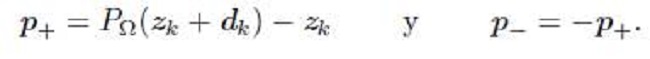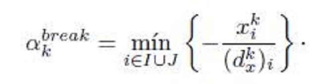 Observe que en el Paso 4, se calcula no solamente p+, sino su negativo, pero solo se pregunta por la factibilidad de p debido a que, este vector no necesariamente es factible.