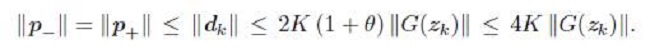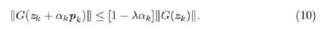 4.1. Si ||G(zk + αkp+)|| ≤ [1 − λαk ]||G(zk )|| defina pk = p+ y pase al Paso 6.