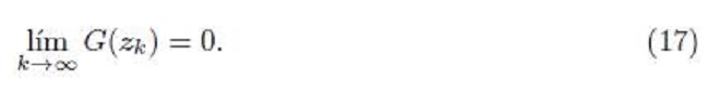 Demostración. Por hipótesis, z* es un punto de acumulación de {zk}. Entonces existe una subsucesión {zkj} tal que zkj → z*, cuando j → ∞ y, por la continuidad de G,