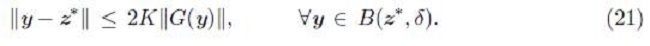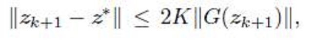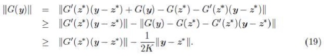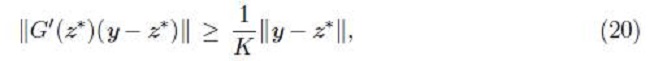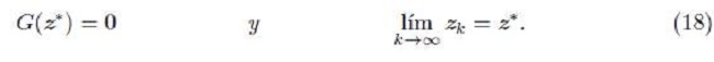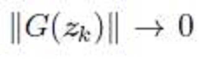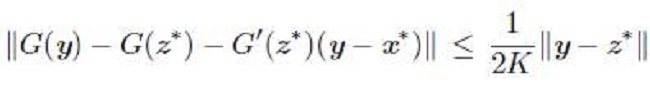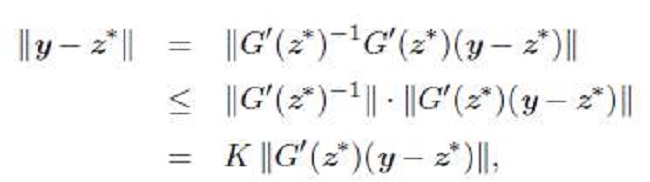 Por otro lado, dado que G(z*) es no singular entonces G'(zk) es no singular y además, ||G'(zk)-1||≤ 2||G'(z*)-1|| = 2K, para k suficientemente grande, de donde