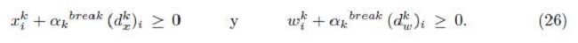 Por otro lado, sumando y restando algunos términos, usando la desigualdad triangular, el Paso 6 del Algoritmo propuesto, el hecho de que αkmáx ≤ 1 y la desigualdad (23), tenemos que