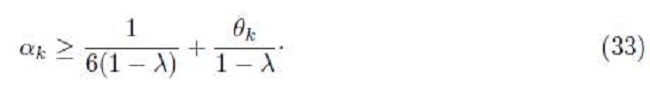 siempre que (1 - λ)αk ≥ 1/6 + θk, dado que λ Є (0, 2/3) entonces para garantizar que (32) se cumpla, es suiciente que