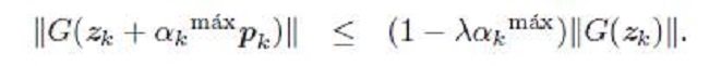 4.2. Si zk + αkp− ∈ Ω y || G(zk + αk p−)|| ≤ [1 − λαk ]||G(zk )||defina pk = p− y pase al Paso 6.