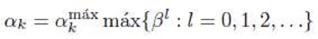 Luego, αkmax satisface la condición (10) en el Paso 5 del algoritmo en consecuencia, αk = αkmax, para k suficientemente grande.