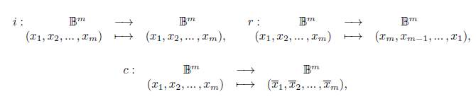 Definition 2.2. Let x, y ∈ 𝔹m . We will say that x is related to y when i(x ) = y or r(x ) = y or c(x ) = y or (c ◦ r)(x ) = y , and it will be denoted by x ∼ y .