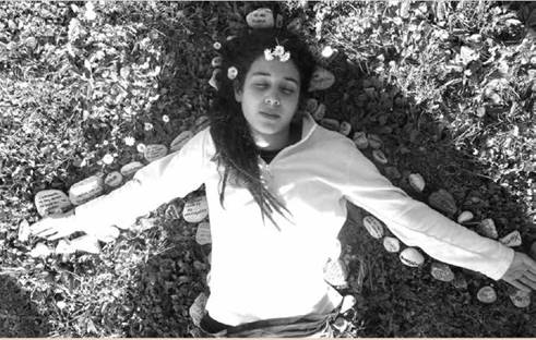 El día en el que se representó la acción performativa se decidió, primeramente, depositar las piedras en un punto central para representar simbólicamente a la comunidad a través de un círculo de piedras como espacio de convocatoria e inclusión, formando así una mandala (Figura 2). Posteriormente se movieron, según el deseo de los participantes, bien rodeando sus cuerpos (Figura 3), bien adoptando diferentes formas para, finalmente, terminar rodeando el centro educativo donde tuvo lugar la acción (Figura 4).