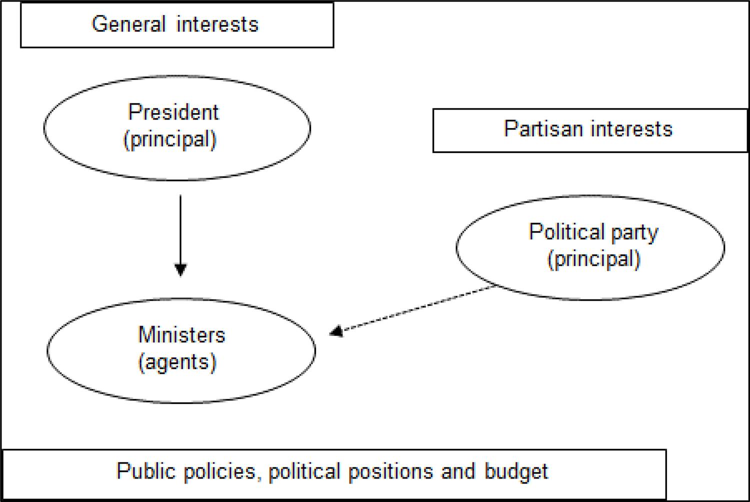 So, in the context of coalition presidentialism, ministers are agents who in general answer to two principals: political parties and the president, as shown in Figure 1: