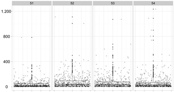 Descrição: Além do boxplot , cada ponto representa um deputado federal que realizou ao menos um discurso no Pequeno Expediente na respectiva legislatura.