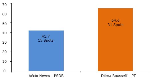 Foram analisados 84 spots da campanha presidencial do segundo turno de 2014: 36 do PSDB e 48 do PT.