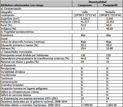 El año 2014, Cauquenes registró cuatro inquietudes sociales sobre contaminación, una situación de emergencia por inundaciones, solicitudes de reparación de caminos y obras de extracción de agua de pozos profundos (déficit hídrico) (Municipalidad de Cauquenes, 2014). Panguipulli registró tres sobre situaciones de emergencia por nevadas (Municipalidad de Panguipulli, 2014). En todos los casos, los afectados se movilizaron, los funcionarios municipales informaron y los concejos municipales aprobaron gastos.