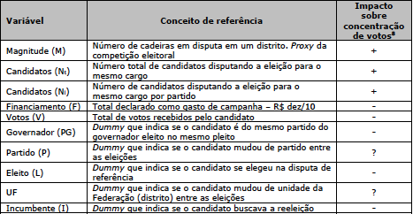 Assim, a magnitude de um distrito seria o indicativo tanto de um determinado comportamento no momento eleitoral quanto de um comportamento parlamentar indesejado em que há dificuldade de se observar diretamente, mas que é ampla e teoricamente esperado pelos trabalhos que lidam com o tema.