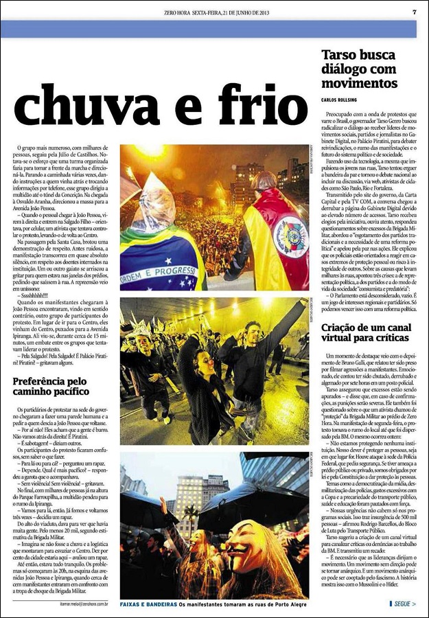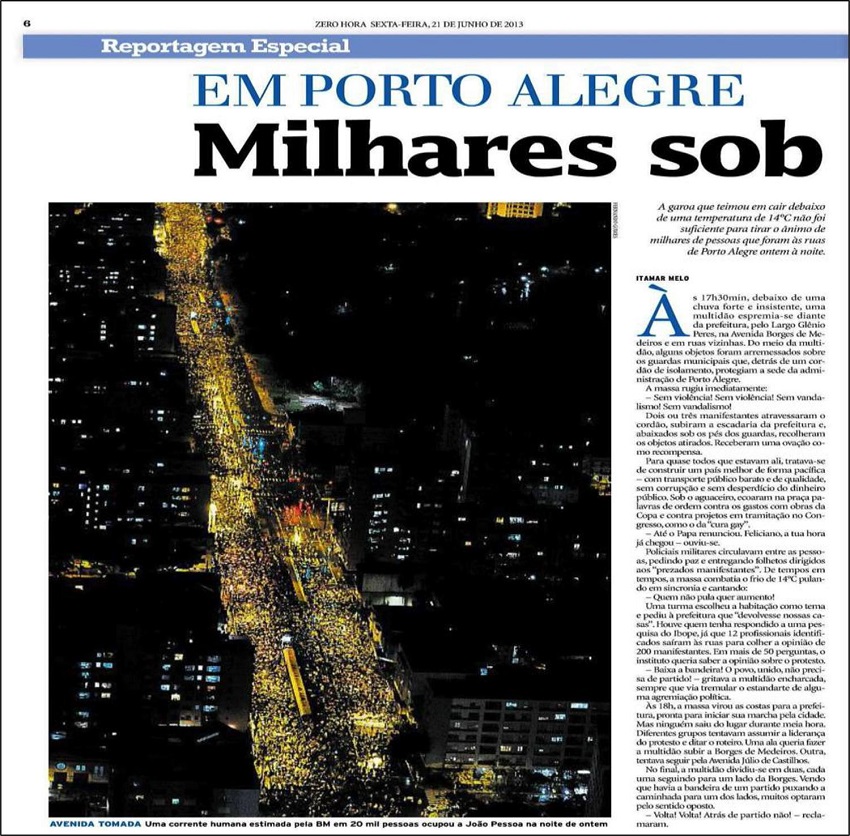Zero Hora. “Em Porto Alegre milhares sob chuva e frio”, 21 jun. 2013.