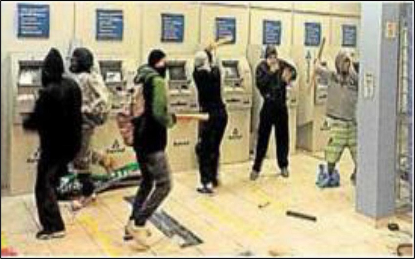 A Figura 10 tem como quadro dominante os manifestantes violentos. A perspectiva de dentro do banco permite visualizar os manifestantes em frente. Os manifestantes violentos são enquadrados em tamanho grande na imagem, de modo que o destaque do olhar é para as performances individuais e violentas, enquanto o conjunto mais amplo da manifestação não é visualizado. Quanto à identidade, os ativistas são enquadrados como “vândalos” ou adeptos das táticas black bloc . As táticas representadas são de depredação de patrimônio, e não há nenhuma reivindicação especificada.