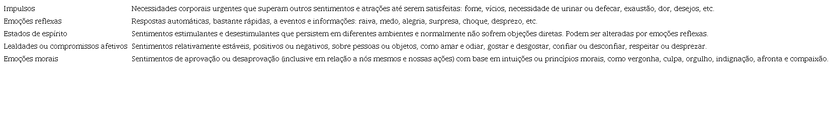 As formas como sentimos o mundo constroem nossa compreensão sobre ele. Ou seja, os significados disponíveis sobre determinado fenômeno tornam-se inteligíveis e tendem a ser interpretados também por fatores emocionais ( Jasper, 2016 ). Nossas ações não são guiadas apenas pela forma que pensamos, mas também como sentimos e como nossos corpos reagem a tais sentimentos ( Gorton, 2009 ).