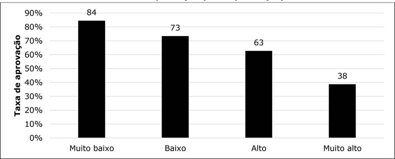 É possível identificar que a taxa de aprovação declina à medida que aumenta o impacto da proposta. Aquelas de impacto muito baixo tiveram aprovação de 84%; já as de impacto muito alto , 38%. Ou seja, propostas que demandavam internalização ou alocação de muitos recursos domésticos para sua consecução, mas que implicavam em maior importância para o processo de integração, tiveram menos chances de serem aprovadas. Isto é, nem chegaram a ser debatidas em instâncias superiores do Mercosul, já que não passaram sequer pelo SGT10.
