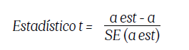 a est= Parámetro estimado en la regresión.a= Valor teórico de la hipótesis nula (para esta investigación es cero).SE(a est) = Error estándar estimado del parámetro.