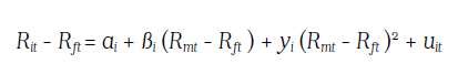 a. Treynor y Mazuy (1966) proponen el siguiente modelo, con efecto cuadrático: