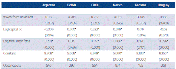The purpose of this paper is to expand the literature by analyzing the impact of unions on productivity for six countries in Latin America, namely Argentina, Bolivia, Chile, Mexico, Panama, and Uruguay. Differences in their economic settings and adaptation to market reforms provide a mixture of settings which suggests a cross-country study may prove valuable to better understand the relationship between unions and productivity.