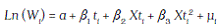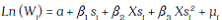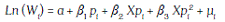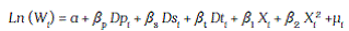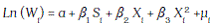 [1]De (1) tenemos que Ln ( Wi ) es el logaritmo del salario que devenga el individuo en un determinado período; Si es el nivel de educación de la persona, medido como los años que ha estudiado durante su vida; Xi son los años de experiencia laboral de la persona; Xi es la experiencia elevada al cuadrado; por último, μi es el término de perturbación aleatoria para las muestras no observables.