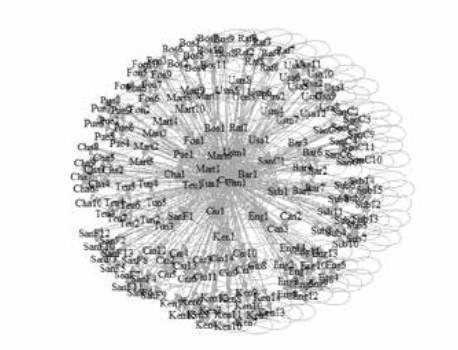 En un escenario más laxo (Red B) se establece que la red de comunicación funciona bajo las mismas reglas con excepción de la regla siete, que en este caso se modifica y corresponde a: cada CAI sólo puede comunicarse con los CAI vecinos, aunque no pertenezcan a su misma localidad. (Figura 3).
