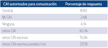 En ambos casos se descarta la comunicación con CAI que no sean vecinos por dos razones. La primera es que la matriz de adyacencia tendría 1 en todas sus entradas y este es un escenario en el que la comunicación no tiene ninguna relevancia para la determinación del modelo. La segunda es que, según lo consignado en las encuestas, la comunicación con CAI no vecinos es normalmente coordinada por el comandante de la estación o la central y, por tanto, su modelación quedaría contemplada en las reglas 2 a 5.