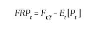 (7)Donde a corresponde a la prima de riesgo de largo plazo del mercado. Para identificar la prima de riesgo que el mercado está cobrando (FRP por las siglas en inglés de Forward Risk Premium), basta con tomar la diferencia entre las dos ecuaciones anteriores. Encontrándose que la FRP tiene un valor máximo de alfa cuando el período al vencimiento tiende al infinito, esto es cuando se presenta que (T-t)-> ∞ y que es cero cuando T=t.