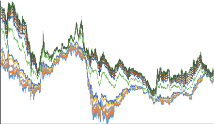 En la Figura 2 se ilustra el sistema, para doce períodos de madurez, de tasas de interés que representan la estructura temporal de tasas de interés estimadas con una frecuencia diaria, desde 2003 hasta 2016, y usadas como inputs para estimar los modelos de volatilidad condicionada y la posterior aplicación del método de componentes principales.