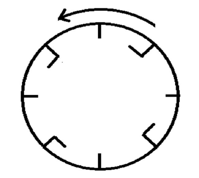 Por otra parte, al encontrarse el reactor en movimiento giratorio, estas áreas de contacto no se mantendrán constantes e iguales, sino que cambiarán en función de la posición relativa de los deflectores respecto a la fuerza de gravedad. Para eliminar esta dificultad, se parte de considerar que, como son ocho deflectores y que son dos consecutivos de perfil diferente como muestra la figura 1, cuando el reactor realiza ¼ de vuelta, se repite la posición relativa de estos, lo que permite realizar el estudio en esta forma.