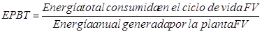 Hou et al.[3], definen el EPBT en años, mediante la ecuación (1), en la cual toman en cuenta todo el proceso del ciclo de vida de un sistema solar fotovoltaico.
